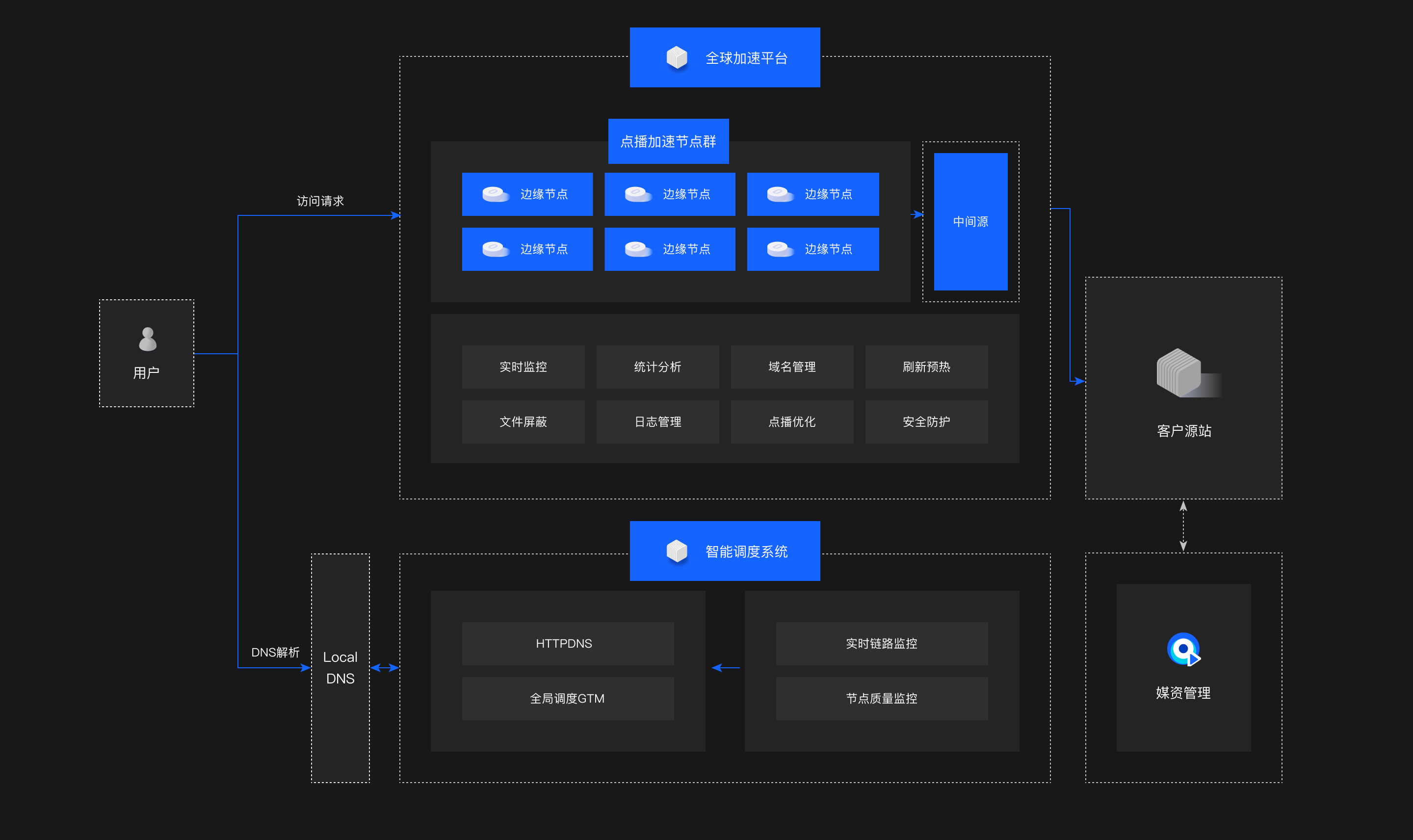 内容分发网络(Content Delivery Network,CDN)通过将源站内容分发至遍布全球的加速节点,由就近CDN节点响应所需资源,提高用户访问网站资源的响应速度。
